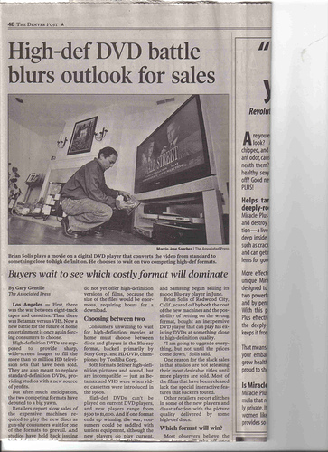 AP’s Gary Gentile ran a story on the market’s reaction to HD DVD players, the competing formats, and its reluctance to embrace the new technology.