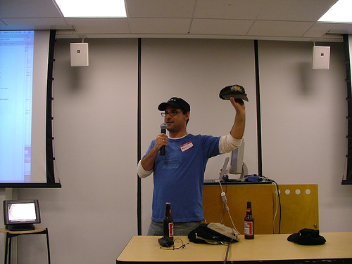 Myles opened up the session with a walk down memory lane, showing off his collection of baseball caps from the dotcom era aka web 1.0, which included siliconalley, infoseek, doubleclick, infobeat, and agency.com.