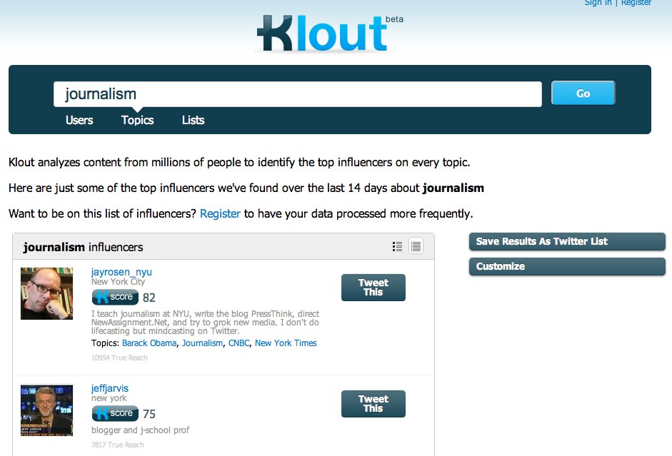 For example, here’s list of the most influential people on the topic of journalism: