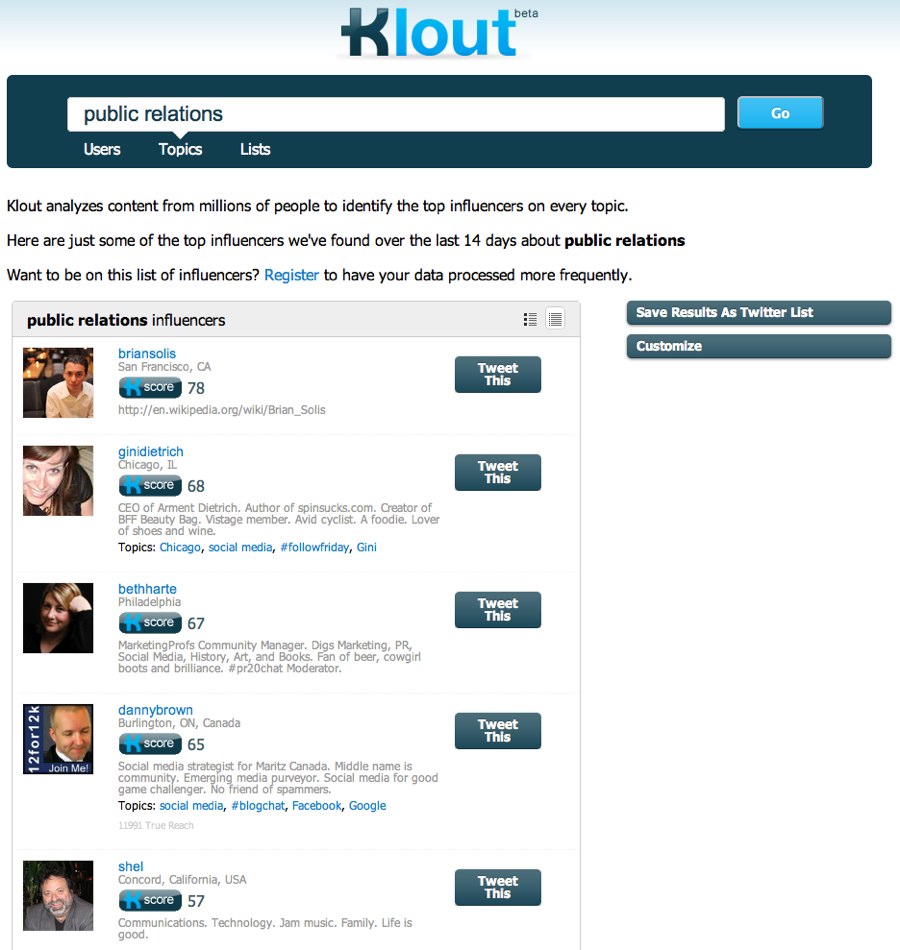 And, according to Klout, Public Relations: