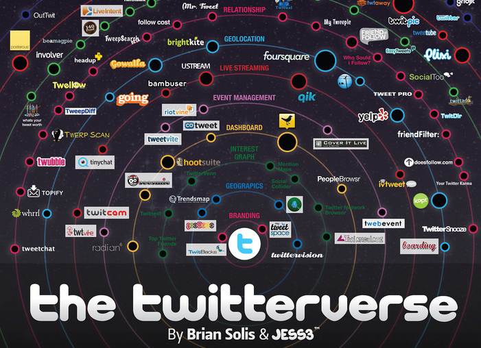 With Twitter at the center of the stellar system, apps orbit at different rotations based on their design and functionality.