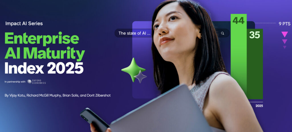 In 2025, ServiceNow’s Enterprise AI Maturity Index studied 4,500 organizations across 16 countries and 11 industries. The research was conducted in partnership with Oxford Economics. The results found that the average maturity score dropped nine points year over year, from 44/100 down to 35/100.