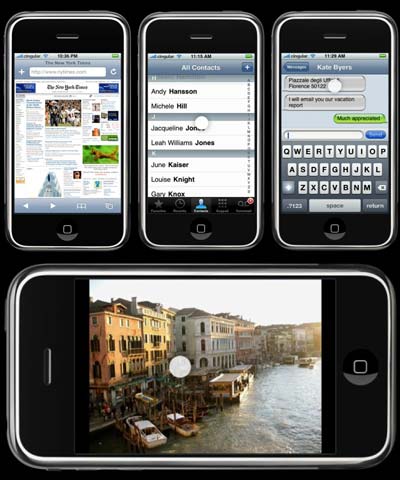 The iPhone reminds me of Palm with adapted and entirely new applications and experiences, that for the most part, could be considered independent of the Mac. While it is an Apple product, it’s really more closely related to the iPod than it is to the Mac OS. In fact, the embedded applications remind me more of Mac OS widgets than applications. Except, widgets are freely available on the Mac, but Apple decided against opening up application development for the iPhone. Strange.